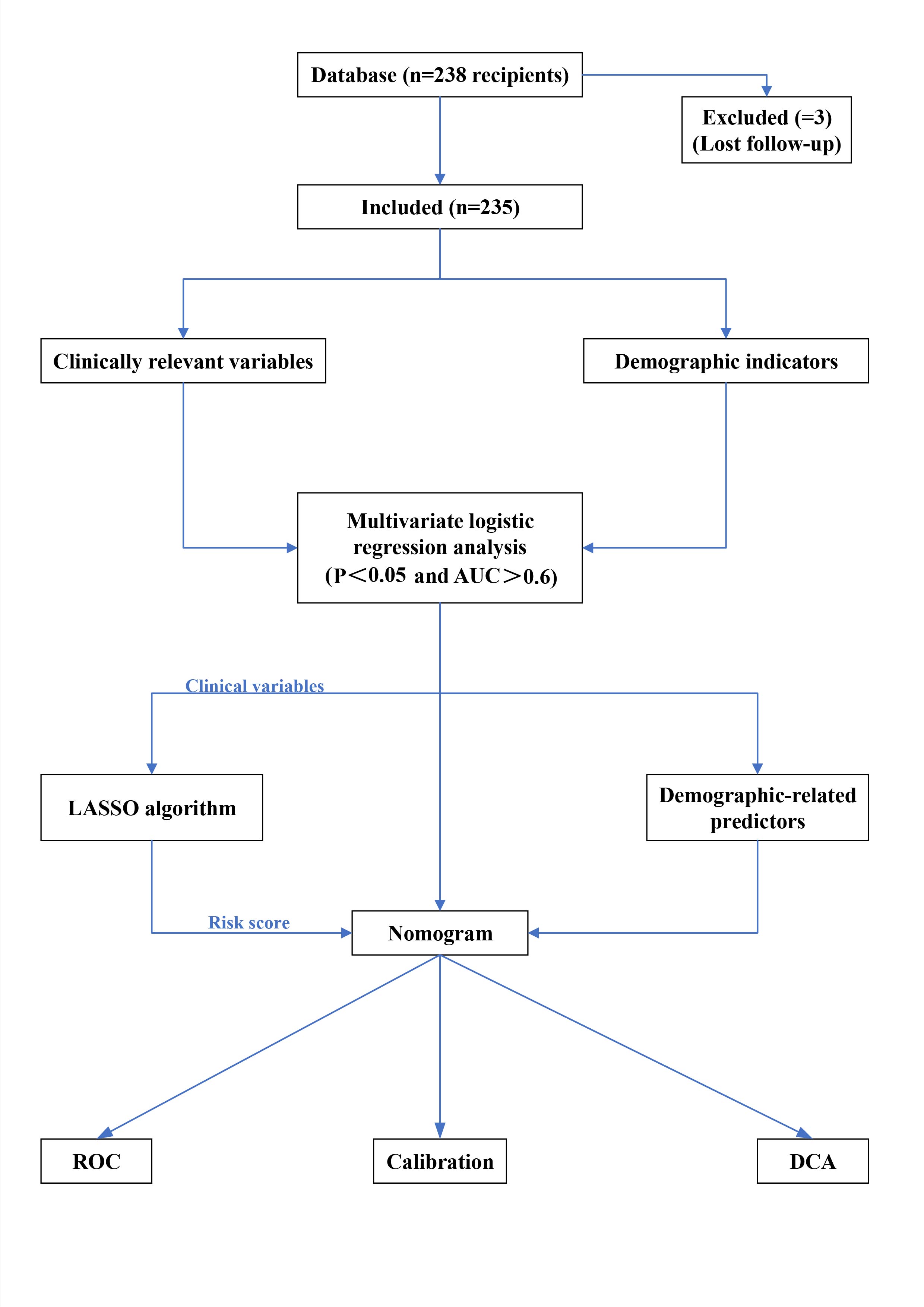 Figure 1. Flow chart of the prediction model of community-acquired pneumonia after KT from the deceased donors.