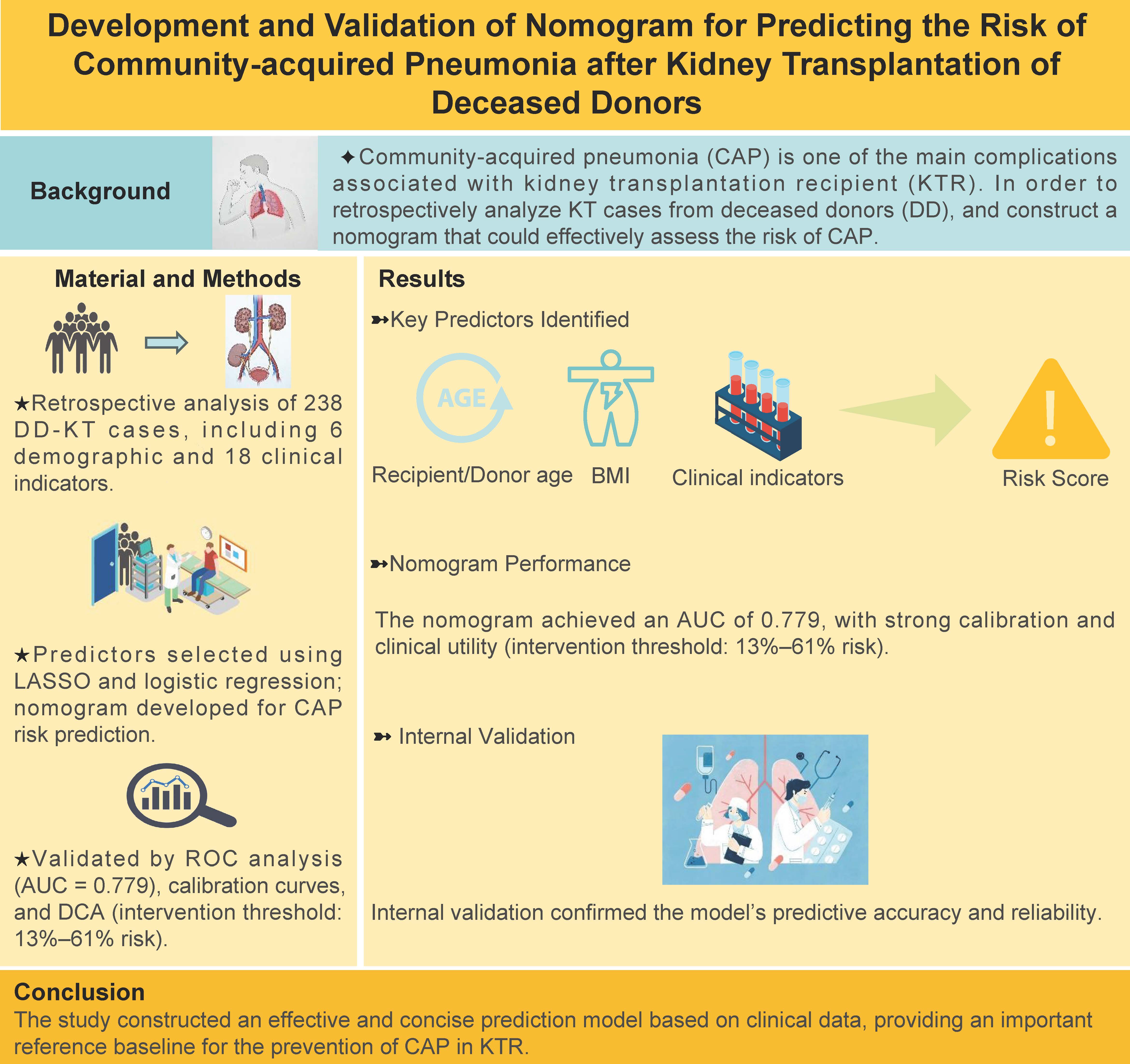 Keywords: deceased donor; kidney transplantation; community-acquired pneumonia; nomogram; risk predictor